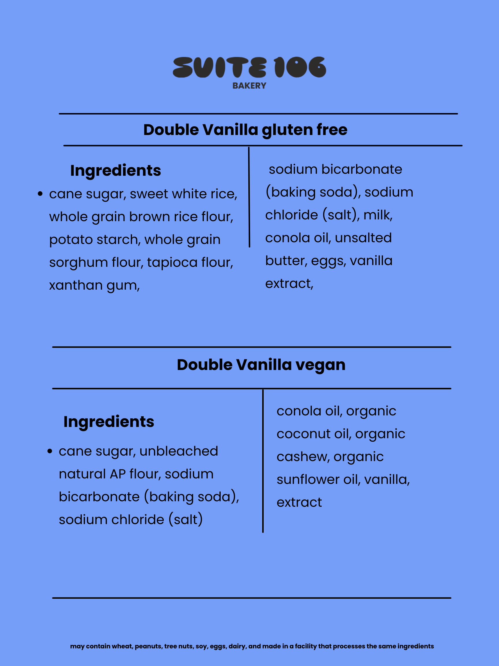 *may contain wheat, peanuts, tree nuts, soy, eggs, dairy, and made in a facility that processes the same ingredients